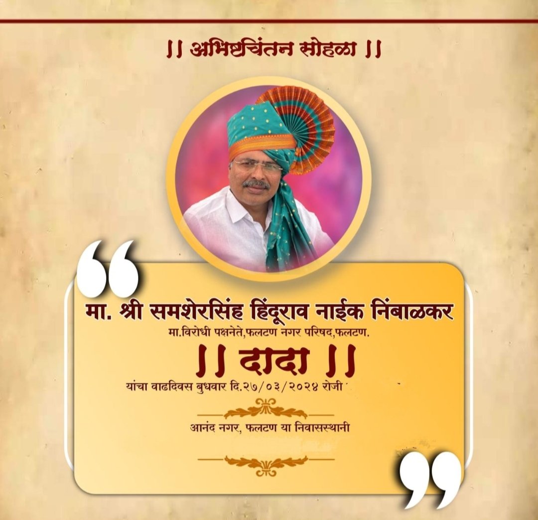 अगदी कमी वयातच बलाढ्य राजकीय शक्ती समोर फलटणचे नगरसेवक, विरोधीपक्ष नेता अशा विविध जबाबदाऱ्या समशेरदादा यांनी लीलया पार पडल्या आहेत. त्यांना भावी राजकीय जीवनात मोठया संधी मिळतील हे सांगण्यासाठी आता कोण्या ज्योतिष्याची गरज नाही हे वेगळे सांगायला नकोस... दादांना समजासेवेची मोठी संधी मिळो तर त्यांचे जीवन निरामय राहो याच त्यांना शुभेच्छा....